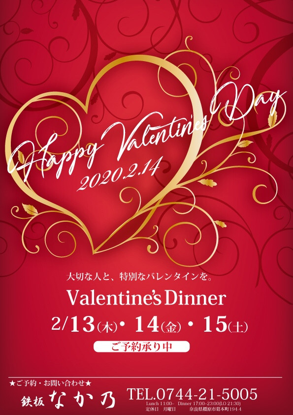 2020年バレンタインを鉄板なか乃で